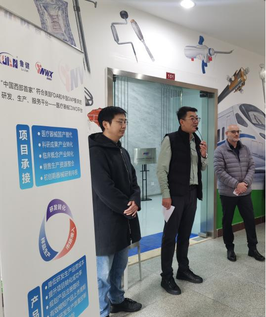 活动期间,青岛鲁健CEO赵麟先生、Gordian Surgical Ltd.CEO ROI先生先后致辞,因诺唯行负责人对中国西部地区首家医疗器械CDMO平台进行了全面细致的介绍。随后,各位领导参观了公司的办公区域、实验区、研发中心、生产车间等核心部门。现代化的办公环境、智能化的研发设备,以及严谨高效的工作流程,给考察团留下了极为深刻的印象。